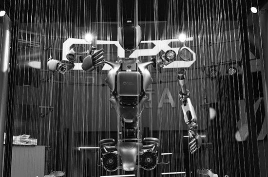2025全球开发者先锋大会现场拍摄的机器人展示装置。    新华社 图