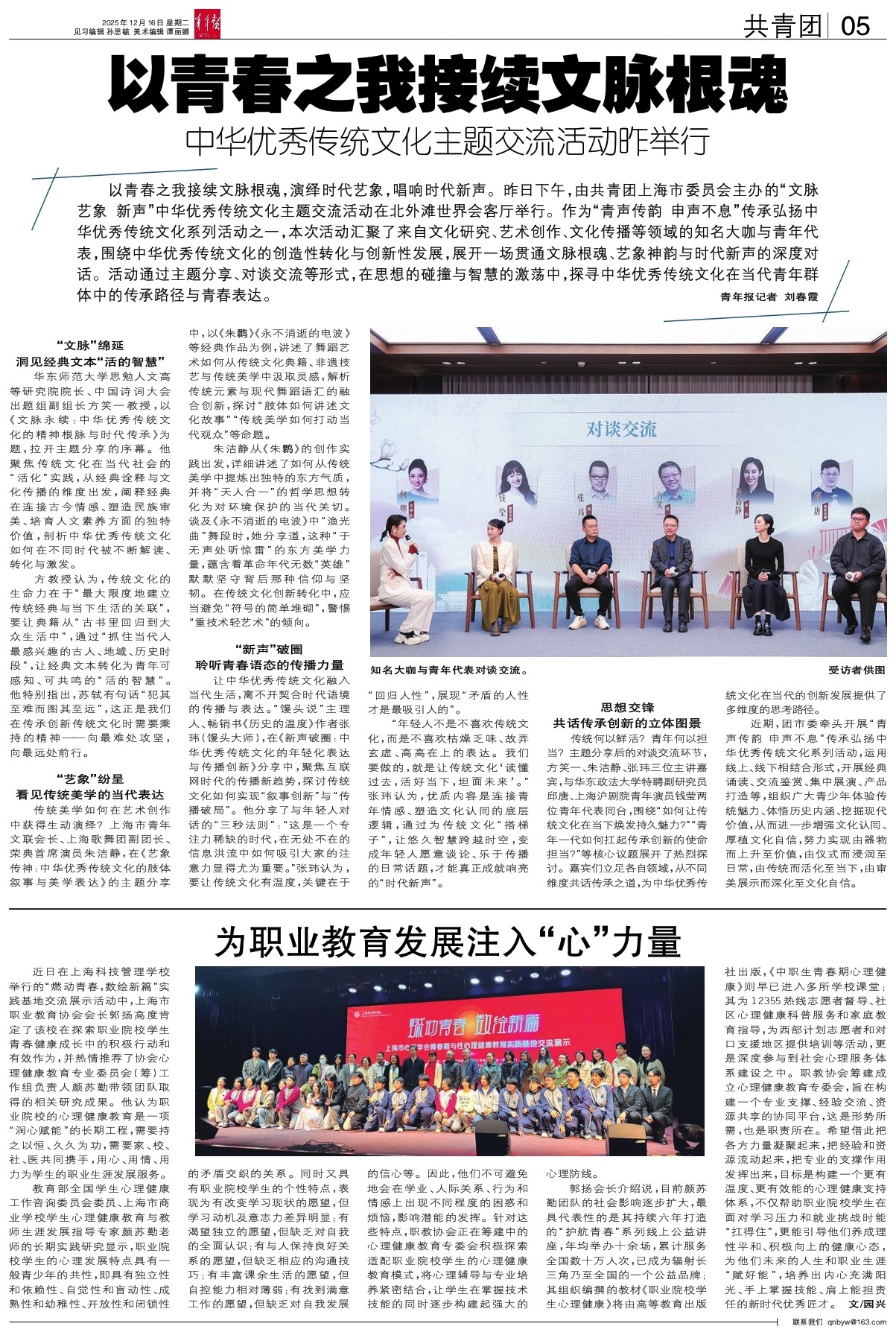 教育部全国学生心理健康工作咨询委员会委员、上海市商业学校学生心理健康教育与教师生涯发展指导专家颜苏勤老师的长期实践研究显示,职业院校学生的心理发展特点具有一般青少年的共性,即具有独立性和依赖性、自觉性和盲动性、成熟性和幼稚性、开放性和闭锁性的矛盾交织的关系。同时又具有职业院校学生的个性特点,表现为有改变学习现状的愿望,但学习动机及意志力差异明显;有渴望独立的愿望,但缺乏对自我的全面认识;有与人保持良好关系的愿望,但缺乏相应的沟通技巧;有丰富课余生活的愿望,但自控能力相对薄弱;有找到满意工作的愿望,但缺乏对自我发展的信心等。因此,他们不可避免地会在学业、人际关系、行为和情感上出现不同程度的困惑和烦恼,影响潜能的发挥。针对这些特点,职教协会正在筹建中的心理健康教育专委会积极探索适配职业院校学生的心理健康教育模式,将心理辅导与专业培养紧密结合,让学生在掌握技术技能的同时逐步构建起强大的心理防线。