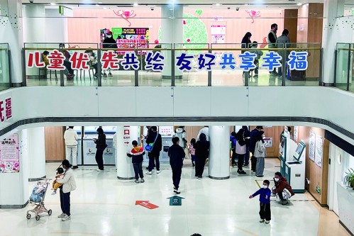 上海市儿童医院北京西路院区门诊大厅。青年报记者 常鑫 摄