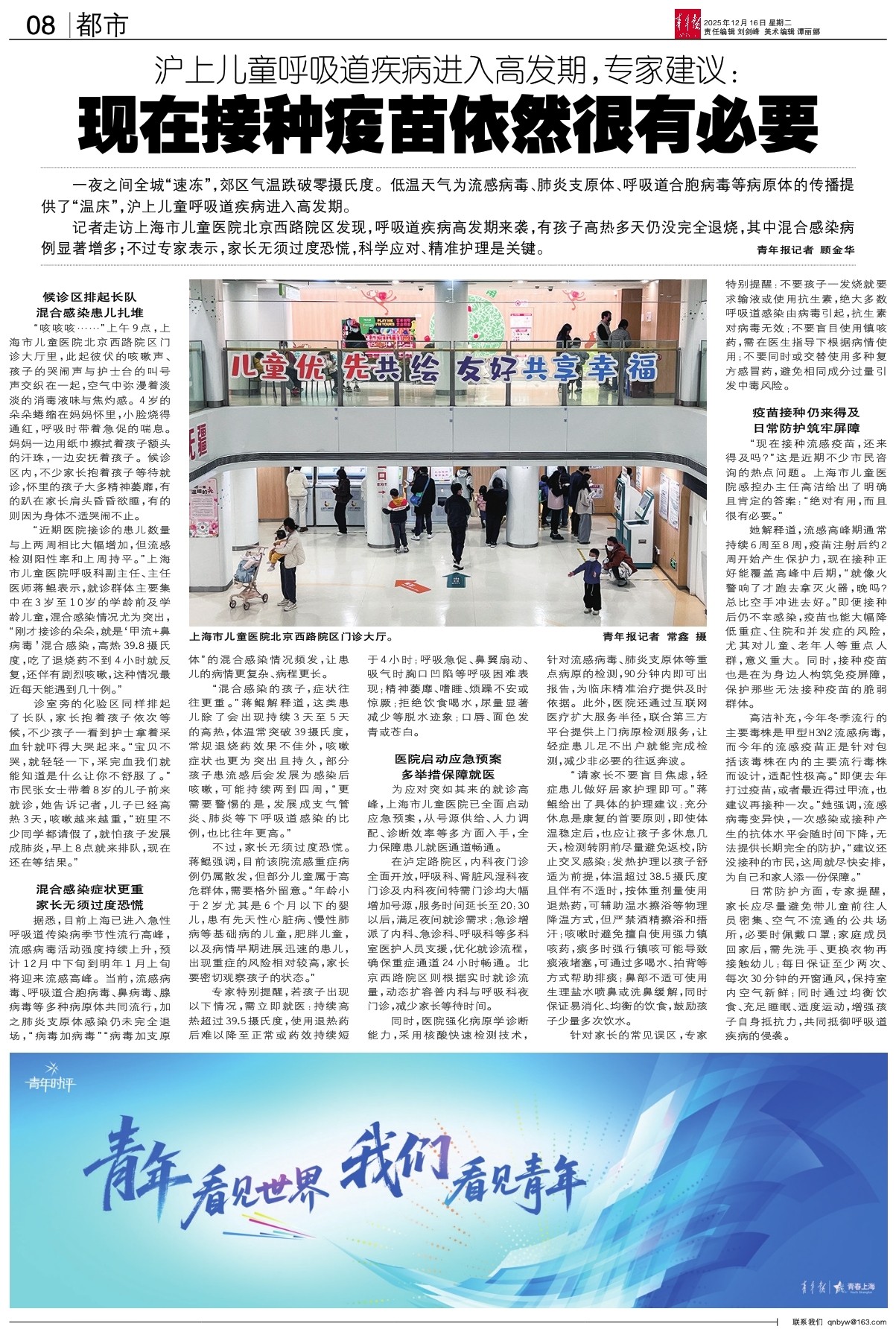 记者走访上海市儿童医院北京西路院区发现,呼吸道疾病高发期来袭,有孩子高热多天仍没完全退烧,其中混合感染病例显著增多;不过专家表示,家长无须过度恐慌,科学应对、精准护理是关键。