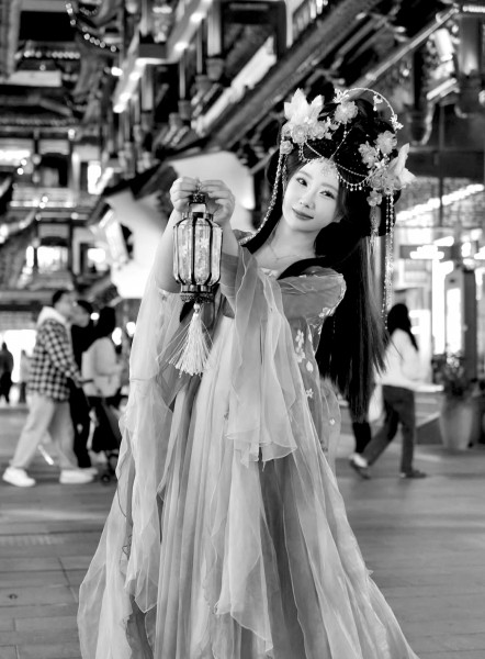 这份理解,往往会先从沉浸式体验中式浪漫起步。在夜幕下的豫园中,常能看到不少外籍游客换上一袭汉服游园。来自韩国的游客萨宾就是专程为了“圆梦”汉服而来,提前在网上做足了功课:“最想试的就是汉服拍照和中式妆造,穿上比想象中更好看!”