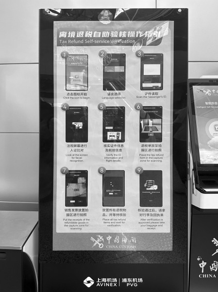 浦东机场的离境退税自助机。 青年报见习记者 王馨怡 摄