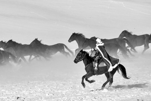 新疆昭苏县湿地公园的雪原,依旧万马奔腾、漫天雪雾。只是那个曾身披红斗篷、策马雪原的身影,却化作了人们心头的一抹红。