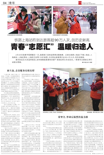 面对如此巨大的返程客流,如何保障旅客顺利回家?地铁虹桥火车站站内,一群青年志愿者正用行动给出答案。青年报记者 郭颖