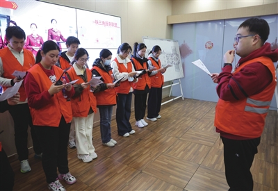 何佳明在上岗前,开展了岗前培训。 本版摄影 青年报记者 吴恺