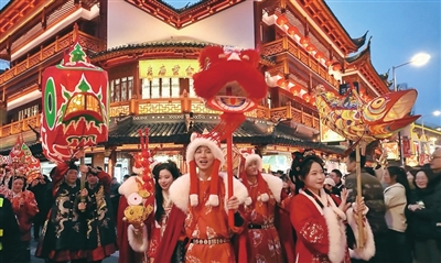上海豫园昨天张灯结彩,处处洋溢着喜庆热闹的节日氛围。青年报记者 施剑平 摄