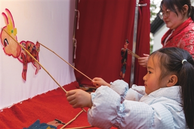 小朋友参与皮影戏表演。 本版均为受访者供图
