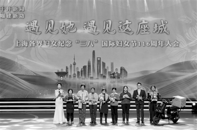 本报讯 昨日下午,“遇见她,遇见这座城”——上海各界妇女纪念“三八”国际妇女节116周年大会举行。市领导朱忠明、宗明、卢山、吴信宝出席,向全市各界妇女和广大妇女工作者致以节日问候和美好祝福。