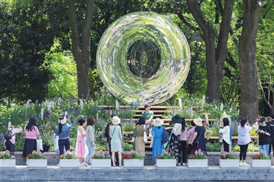 人们在2025上海国际花展黄浦新天地主会场赏花、游玩。新华社资料图