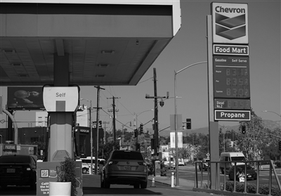 3月9日,车辆在美国加利福尼亚州洛杉矶县的加油站加油。新华社 图