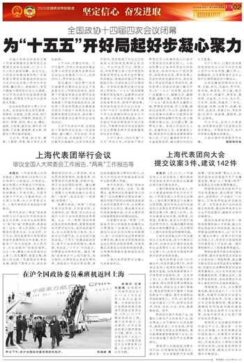本报讯 记者 刘晶晶 全国政协十四届四次会议3月11日上午在北京人民大会堂闭幕。出席会议的在沪全国政协委员圆满完成会议各项议程,3月11日下午乘班机返回上海。据不完全统计,会议期间,在沪全国政协委员提交提案313篇,解冬、王均金委员作了大会口头发言,9名委员提交大会书面发言10篇,为会议作出了应有贡献。