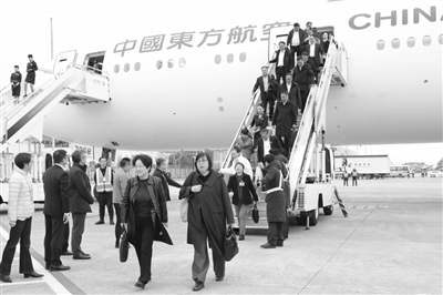 昨日下午,在沪全国政协委员乘班机抵沪。张海峰 摄