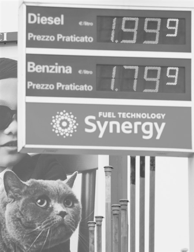 这是3月11日在意大利米兰市中心拍摄的一家加油站的油价牌。