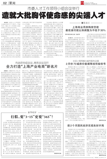 会议指出,要深入学习贯彻习近平总书记关于做好新时代人才工作的重要思想,紧紧围绕高水平人才高地建设这一战略任务,为国担当、勇为尖兵,抢抓机遇、锐意进取,把人才工作做得更深更细更实,着力造就大批胸怀使命感的尖端人才,切实提升人才队伍的高度、宽度、厚度,更好聚天下英才而用之,为实现“十五五”良好开局,为上海在推进中国式现代化中充分发挥龙头带动和示范引领作用提供强大人才支撑。