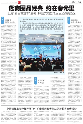 青年报记者获悉,2026年上海文商旅体展联动全力打造“四季有特色、月月有主题、周周有热点”的连绵效应。“春日首发季”有市级重大联动活动38项,其中核心活动14项、重点活动24项,包括文化艺术类16项、商业促销类3项、旅游节庆类9项、体育赛事类7项、会展经济类3项。 青年报记者 郭颖