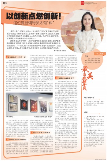 这位总爱为学生“打开一扇门”的辅导员正是2025年度上海市“最美高校辅导员”获得者,复旦大学智能材料与未来能源创新学院党委副书记、辅导员许妍。14年来,她一次次创新探索中点亮青年成长的方向。因为她深信:唯有育人者先求新求变,学生方能生长出创新创造的内在品格。