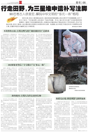 面对记者,刚从三星堆遗址返回上海的徐斐宏略显疲惫,采访过程中不时揉揉眼睛,还打了好几个哈欠。“不好意思啊,没休息好。”他连声抱歉。作为上海大学文化遗产与信息管理学院副教授、三星堆三号坑发掘现场负责人,徐斐宏此次重返是由于遗址的考古工作仍在进行,而当下的重点任务,是为三星堆—金沙遗址联合申遗的文本提供学术支撑。他透露,此次申遗工作是近年四川文博界的头等大事,关键的申遗文本编撰已进入冲刺阶段。青年报记者 唐骋华