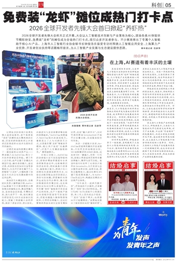 2026全球开发者先锋大会昨天正式开幕,大会以人工智能技术创新与产业落地为核心,现场各类AI体验环节精彩纷呈,免费装“龙虾”的摊位成为全场热门打卡点,吸引众多开发者参与。不少展商推出了专属个人智能助手核心AI产品。上海市人工智能行业协会秘书长钟俊浩在接受专访时围绕人工智能应用安全、上海算力产业优势、开发者创业扶持等话题畅所欲言,为人工智能产业发展与生态建设提供思路。青年报记者 范彦萍