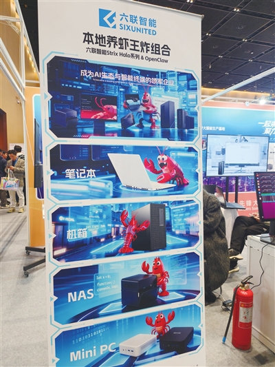 “今年春天一起养只数字虾”,在现场的不少展位,记者看到了“龙虾”的LOGO和标语。在SillyMD Skills技能中心的展位前,有工作人员向观众介绍说:“‘龙虾’的钳子再大,也得靠skill才能横着走。”该展商还推出了能即插即用的“傻福虾盘”。