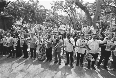 3月26日,委内瑞拉民众在首都加拉加斯市中心的玻利瓦尔广场举行集会,声援总统马杜罗。新华社 图