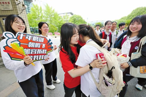 芒种连雨不知春去,一晴方觉夏将至。6月7日,2024年高考将拉开序幕,又一届高三学生即将奔赴人生的重要战场。上海各大高中的校园里,进行着高三的最后一课,既有对于高考的美好祝福,又有面对毕业离别的不舍。昨天是上海师范大学附属宝山罗店中学高三学生在学校的最后一天,记者走进该校,近距离感受师生“赢”战高考的期待,也感受他们彼此之间的情谊。