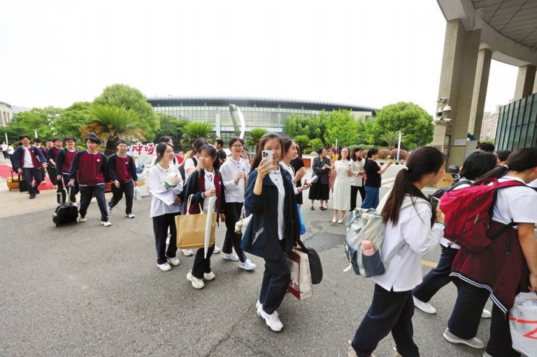 6月7日,2024年高考将拉开序幕,又一届高三学生即将奔赴人生的重要战场。昨天是上海师范大学附属宝山罗店中学高三学生在学校的最后一天,学校老师和高二的学弟学妹们用一场温馨又欢快的仪式为他们壮行。走在“红毯”上,两边是加油助威的学弟学妹,校门口是送上拥抱和祝福的老师和校长,走出校园的高三少年们也不禁信心高涨:“高考考场见!”