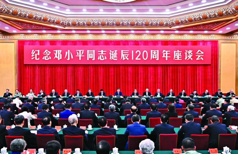 中共中央22日上午在人民大会堂举行座谈会,纪念邓小平同志诞辰120周年。中共中央总书记、国家主席、中央军委主席习近平发表重要讲话。他强调,邓小平同志是全党全军全国各族人民公认的享有崇高威望的卓越领导人,伟大的马克思主义者,伟大的无产阶级革命家、政治家、军事家、外交家,久经考验的共产主义战士,党的第二代中央领导集体的核心,中国社会主义改革开放和现代化建设的总设计师,中国特色社会主义道路的开创者,邓小平理论的主要创立者,为世界和平和发展作出重大贡献的伟大国际主义者。他对党、对人民、对国家、对民族、对世界作出了突出贡献,功勋彪炳史册、永励后人。