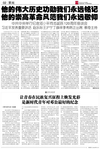 青年时评|让青春在民族复兴征程上焕发光彩 是新时代青年对邓公最好的纪念