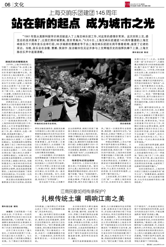 - 站在新的起点 成为城市之光 “1961年我从莫斯科留学归来后就进入了上海交响乐团工作,对这里的感情非常深。这次回到上交,感觉总的技术提高了,比我们那时候要高,我非常高兴。”9月6日,上海交响乐团建团145周年暨捷豹上海