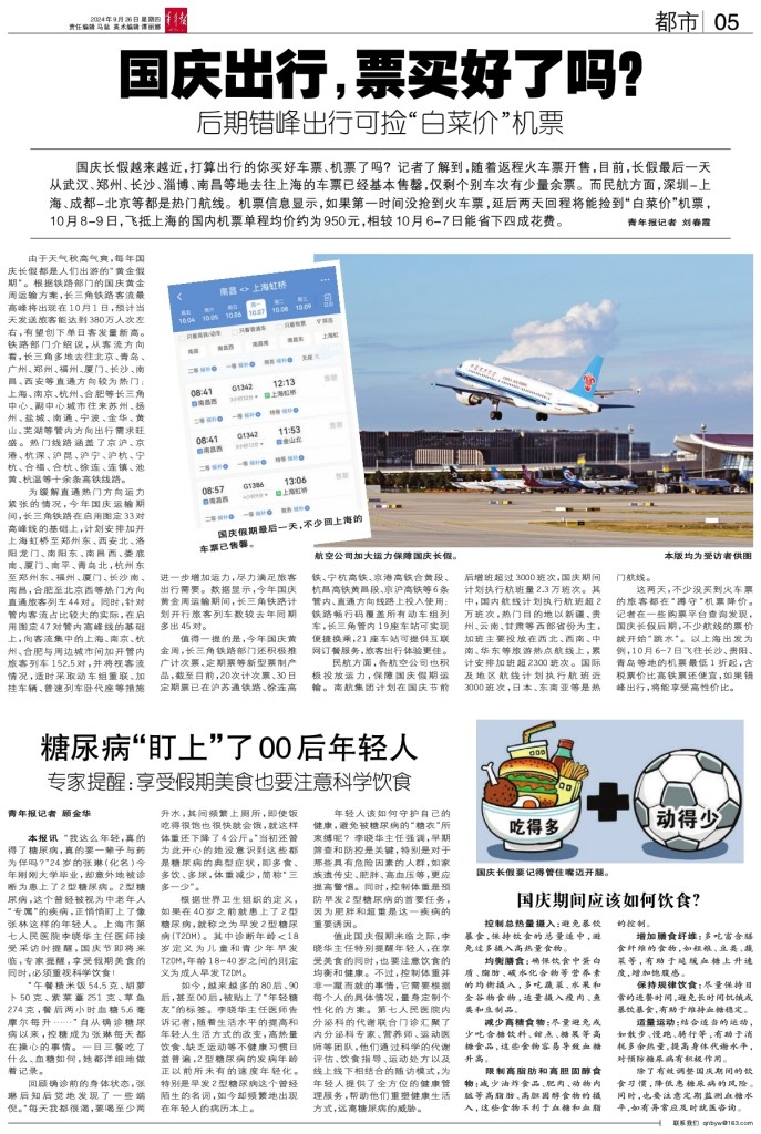 国庆长假越来越近,打算出行的你买好车票、机票了吗?记者了解到,随着返程火车票开售,目前,长假最后一天从武汉、郑州、长沙、淄博、南昌等地去往上海的车票已经基本售罄,仅剩个别车次有少量余票。而民