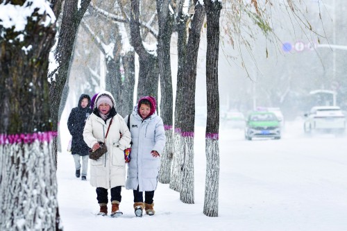 中央气象台11月25日发布寒潮黄色预警,受强冷空气影响,我国中东部大部地区气温下降6℃至10℃,其中,华北北部、内蒙古中部及东北地区等地部分地区降温12℃至14℃,局地16℃以上。黑龙江多地迎来暴雪、大暴雪,气温大幅降低。