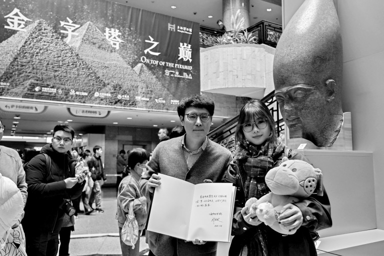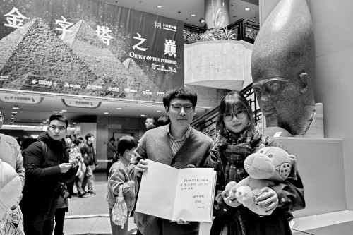 本报讯 在常州大学读书的华佳雯没有想到,她11月26日下午1点赶到上海来看“金字塔之巅:古埃及文明大展”,竟成了该展的第100万名预约观众。从上博馆长禇晓波手里获赠签名画册等精美周边文创产品。