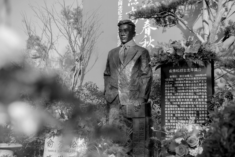 俞秀松烈士在莫斯科遇害后,长期英灵无宿,一直是亲属心中的伤痛。上海福寿园了解到这一情况后,在团市委的大力支持下,主动与烈士遗孀安志洁等亲属联系,提议在上海福寿园为俞秀松筑墓立像,让“英灵还乡”。2002年,在中国共产主义青年团成立80周年之际,上海福寿园·意遐苑内的苍松翠柏间,俞秀松烈士纪念铜像终得落成。