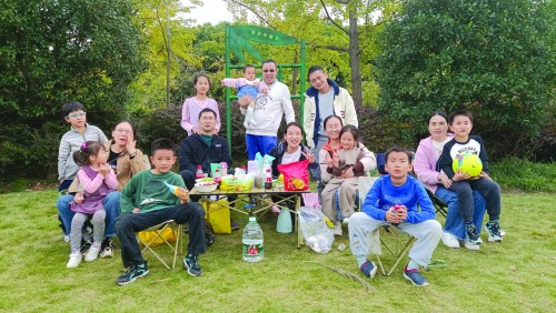 8个大人和8个孩子,开怀大笑,其乐融融——王飞原的手机相册里珍藏着不少这样的合影——四个家庭经常结伴携子出游,组成了一套固定的育儿阵容。其中,王飞原和一个同住在松江的老同学走动更为频繁。自孩子出生起,几乎每个周末两个家庭都会相聚。