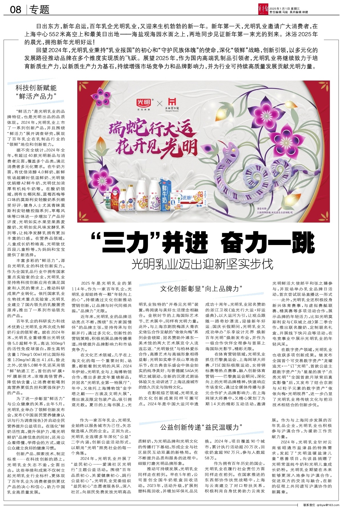 日出东方,新年启运,百年乳企光明乳业,又迎来生机勃勃的新一年。新年第一天,光明乳业邀请广大消费者,在上海中心552米高空上和最美日出地——海盐观海园水面之上,两地同步见证新年第一束光的到来。