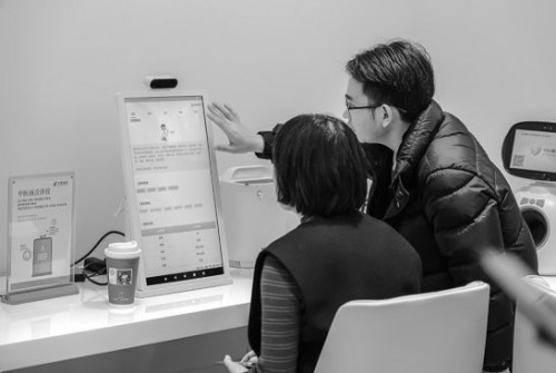 地处北外滩商务区的中国邮政储蓄银行上海分行营业部二楼近日十分热闹,这里是该网点的财富中心,不见传统的银行玻璃柜台,取而代之的是开放的大厅,设有咖啡休闲区、沙龙活动区、客户洽谈间,最新开辟出温馨的“中邮健康驿站”,摆放着若干先进的健康检测设备,可以进行中医远程面诊,还可检测视网膜、骨密度、血氧、血压等数值,这些均供市民免费使用,以便大家及时了解自己的身体状况。为了照顾好老年市民,完善适老配套服务,这里还配备了吸氧机、临时急救箱等设备,同时,与社保打通的社银直联也为老人查询社保信息提供了便捷服务。网点负责人施昶迪告诉记者,去年12月,健康驿站开业也立刻邀请周边白领及居民来体验,还请来中医为大家健康把脉,备受欢迎,“未来我们将不定期举办中医讲座、小小银行家的活动,为周边居民提供服务。”