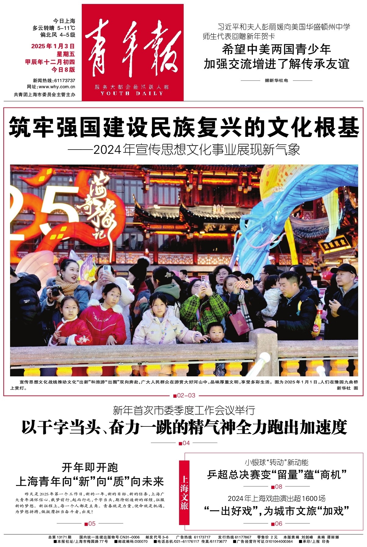 - 2025年1月3日 星期五 甲辰年十二月初四 今日8版 新闻热线:61173737 网址:www.why.com.cn 共青团上海市委员会主管主办
