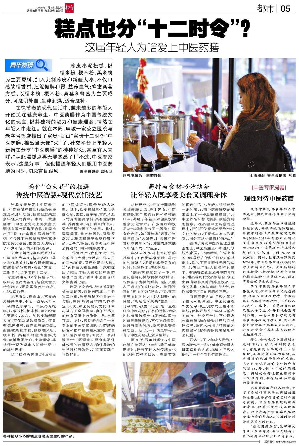 在快节奏的现代生活中,越来越多的年轻人开始关注健康养生。中医药膳作为中国传统文化的瑰宝,以其独特的魅力和健康理念,悄然在年轻人中走红。就在本周,申城一家公立医院与老字号饭店推出了富贵·香山“富贵十二时令”中医药膳,推出当天便“火”了,社交平台上年轻人纷纷在分享“中医药膳”的种种好处,甚至有人直呼:“从此喝糕点再无罪恶感了!”不过,中医专家表示:这是好事!但也提醒年轻人们服用中医药膳的同时,切忌盲目跟风。