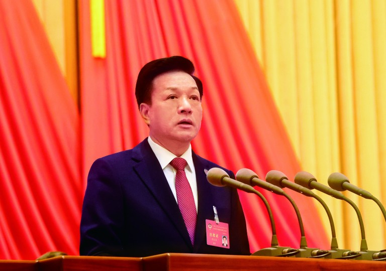 上午9时,肖贵玉宣布大会开幕,全体起立,奏唱国歌。
