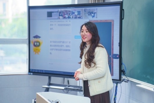 在求真中学教师陈韡婷和求真南校教师钱凤娇共同执教的一堂化学同侪课上,同学们正在研究蜡烛的燃烧,他们手中的平板上有一名专属AI助教,当学生提出实验困惑时,AI助教没有直接给出答案,而是通过系列启发式问题,引导学生有针对性地反思实验过程,自主提出改进思路。AI助教还提供慢放的学习视频,帮助学生发现难以直接观察的现象。伴随着多轮对话,各组学生的实验问题迎刃而解。同学们坦言,有AI助教陪伴着实验的全过程,随时可以人机对话,很有趣,“AI助教会非常详细地询问依据是什么,帮我们去弥补思维上的漏洞。”
