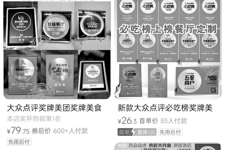 本报讯 餐饮店的“流量密码”,竟隐藏在小小的奖牌制作店内?网店店主声称,仅需花费100元购买一块标识牌匾,就不用再深耕餐饮业数十载,更不用成为百年老字号,就能成为美团美食排行榜上的“黑珍珠”“必吃榜”餐厅,拥有源源不断的客流。“从业”短短两年时间,该店家以此非法牟利一百余万元,严重影响了市场正常营商环境。