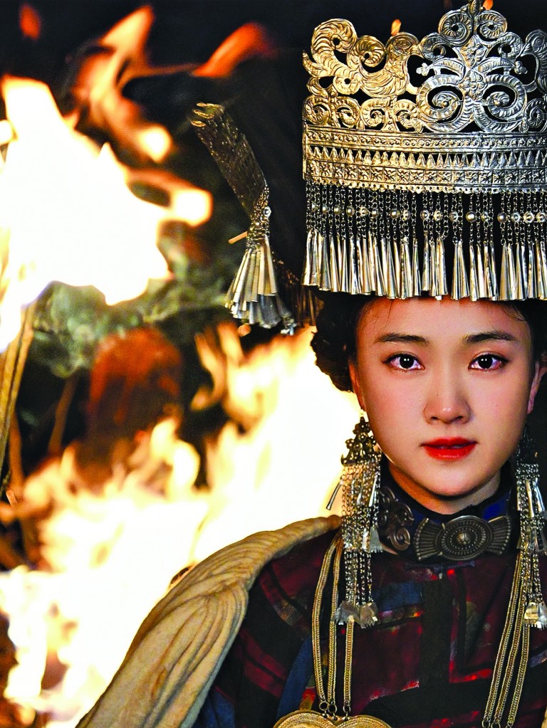 圆形的太阳纹,点状的星星,卷曲的牛眼纹,寓意富庶的羊角纹,这些华美精巧的银饰纹路,通过陈玲玲用锡纸复刻得以呈现。“彝族的民族服饰非常符合我的审美,火把节也比较壮观,她们的女性被称为月亮的女儿。”陈玲玲说。
