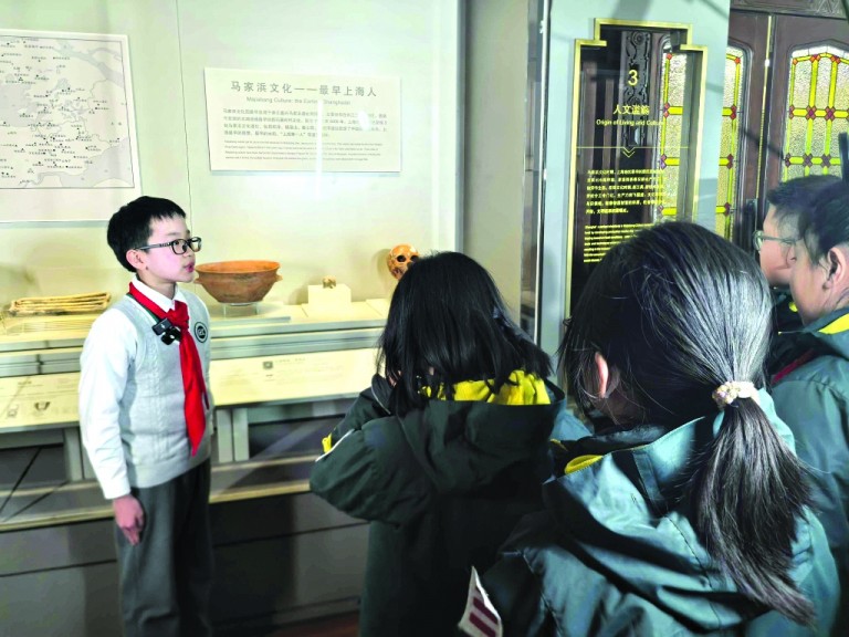 “没问题,跟我来!”2月17日上午,在上海市历史博物馆的“古代上海”展厅,上海市复兴实验中学七年级学生夏宇涵作为“小小讲解员”给来自本学校和虹口区外国语第一小学的小伙伴们讲起了古代上海的历史。当天,虹口区与上海市历史博物馆开启了一堂别样的“开学第一课”,同学们在博物馆内“实地”上课,在历史中汲取智慧与力量,传承与发展海派文化。