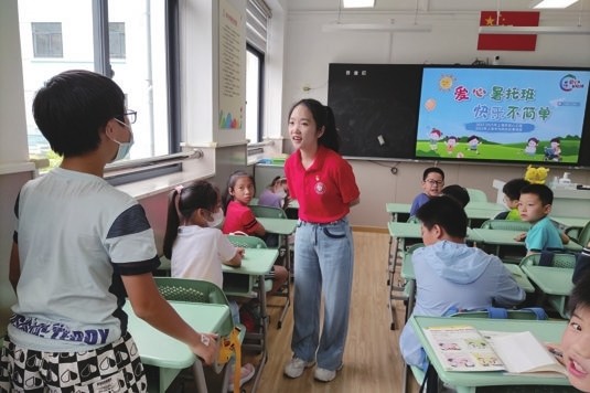 当下,团市委正通过创新“大学生讲、中学生志愿服务、小学生听”的混龄方式,整合高校及中学资源,通过建立健全参与思政课备课教学的长效机制,共享教学资源,特别是与高校思政类学生社团紧密合作,连续三年依托上海师范大学团委,通过马克思主义学生理论宣讲团,打造爱心暑(寒)托班开班第一课,实现对小学生思想观念的引领,构建固本铸魂的思想政治教育体系,为小学生筑牢思想根基。