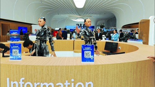 在昨日开幕的2025中关村论坛年会上,青年报记者与春晚出圈的宇树机器人“say了个hi”。除了这位“顶流”,今年中关村论坛年会上,“机器人无处不在”成为最大特色,近百台机器人化身为这一科技盛事的“智愿者”。