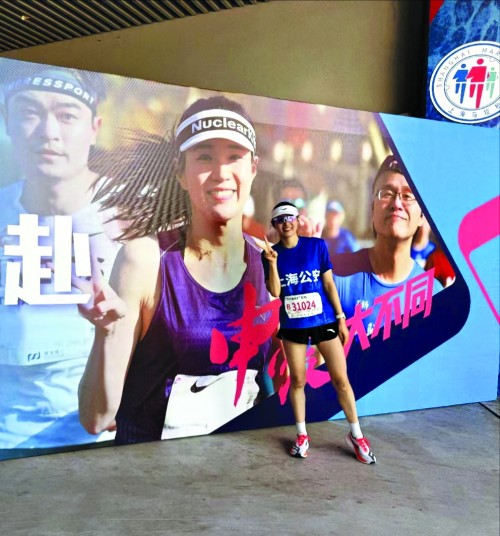 周洁拼搏的身影不仅闪耀在专业的体育赛场,同样也活跃在充满活力的上海马拉松现场。出于工作对于体能素质的要求,以及个人对运动的热爱,周洁有跑马拉松的爱好。值得一提的是,周洁参加2023年上海马拉松比赛时被摄影师捕捉到的参赛瞬间,被打印成海报,出现在2024年上马上海体育馆的赛事现场,吸引了现场众多观众的目光。“运动员时期的经历,以及如今日常坚持运动的习惯,不仅是我缓解压力的绝佳方式,更培养了我的韧性,让我在社区民警的工作中能够更加从容地应对各种挑战。”