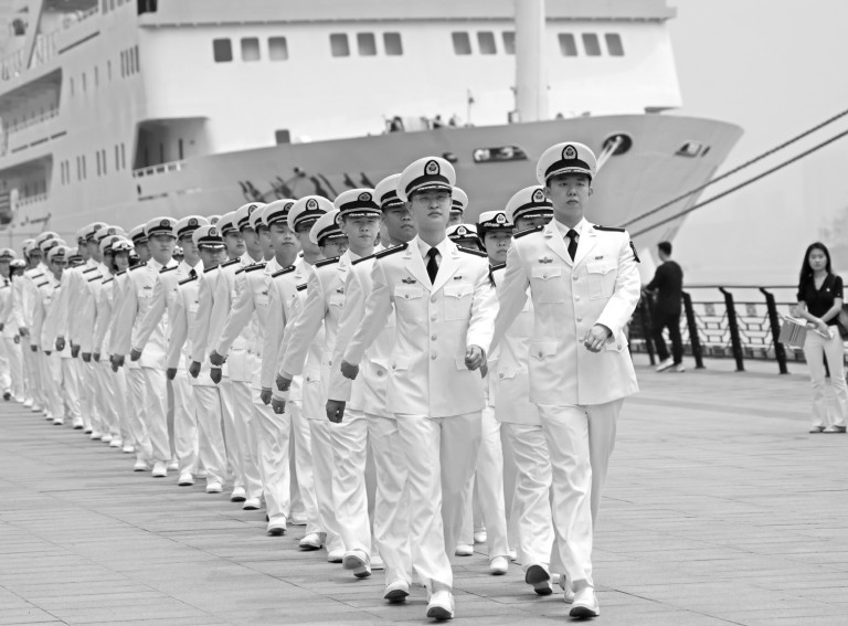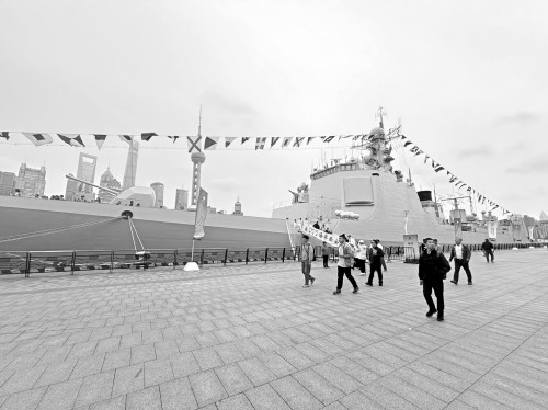 四月的上海,烟雨朦胧的浦江两岸绿意盎然,春风带动旗帜飞扬、浪花翻涌,发出欢呼的“掌声”。4月22日,在人民海军成立76周年之际,驻沪海军部队联合上海市双拥办共同组织以“上海·海上”为主题的舰艇开放活动。导弹驱逐舰西安舰和综合登陆舰沂蒙山舰停驻上海港国际客运中心码头,迎接社会各界民众登舰参观。