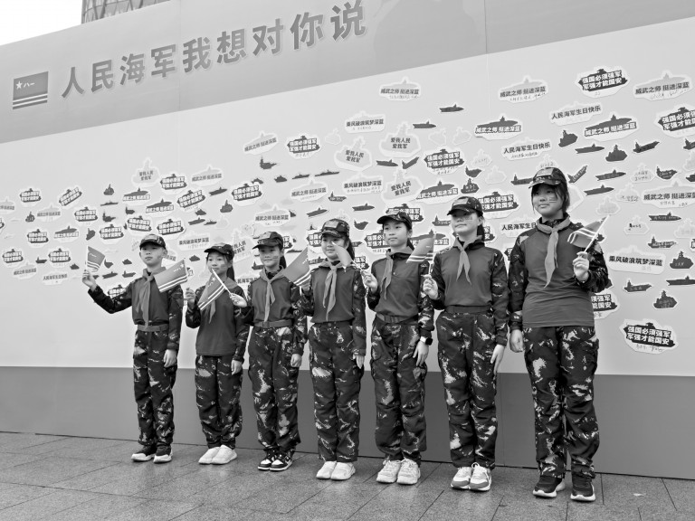 “快看、快看!”五岁的小朋友刘旋是第一批参观游客,他指着舰艇上的干扰弹向父亲分享自己的喜悦。“他平时喜欢收集飞机、舰艇这些模型。今天带他来,主要是想让他亲身感受舰艇的实际规模。”刘先生说,“近距离体验还是不一样,舰艇之大手机屏幕竟然穿不下。”