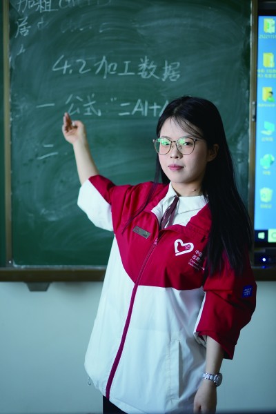 上课时,她全情投入,声音威严,成熟得一点也看不出才22岁。学生们有点“怵”她,但当学生们去食堂吃午饭,她作为值班老师要过去巡查纪律时,学生们总是故意“气”她:“老师,今天的饭太香了,你还没吃吧?是不是要流口水啊?”
