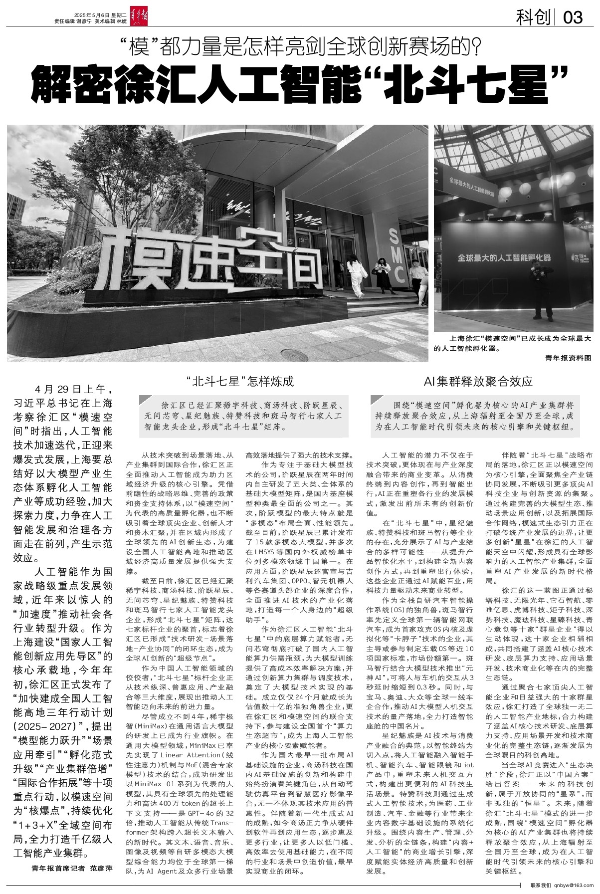 当全球AI竞赛进入“生态决胜”阶段,徐汇正以“中国方案”给出答案——未来的科技创新,属于开放协同的“星系”,而非孤独的“恒星”。未来,随着徐汇“北斗七星”模式的进一步成熟,围绕“模速空间”孵化器为核心的AI产业集群也将持续释放聚合效应,从上海辐射至全国乃至全球,成为在人工智能时代引领未来的核心引擎和关键枢纽。